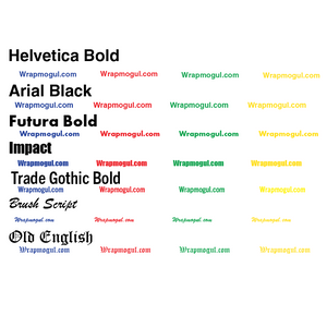 Font Options: • Helvetica Bold - Classic professional • Arial Black - Bold and clear • Futura Bold - Modern geometric • Impact - Ultra-bold condensed • Trade Gothic Bold - Industrial strength • Brush Script - Elegant cursive • Old English - Traditional blackletter